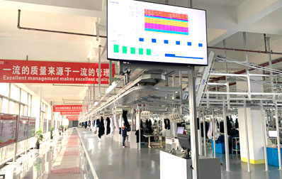 目前拥有自动裁床、自动拉布机、全自动吊挂流水线、自动模板机、自动包装机、自动开袋机、自动锁眼机等各类自动化设备。
